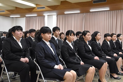 桜咲く暖かい日、日翔会の新規学卒者の入職式を執り行いました。