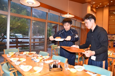 夕食は、当番で配膳します。