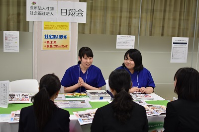 出雲医療看護専門学校を卒業し、介護老人保健施設おしどり荘リハビリ職として働く2名の職員が、母校での学内説明会に参加してきました!