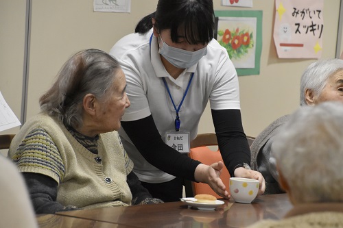学生さんは「レクレーション前の運動として指や足などを使った体操の必要性や、残存能力を活かして、やりたいこと・望む生活を実現するために表情だけではなく、どうケアにつなげるかを、考えていることがよく分かった」と感想を寄せてくれました。