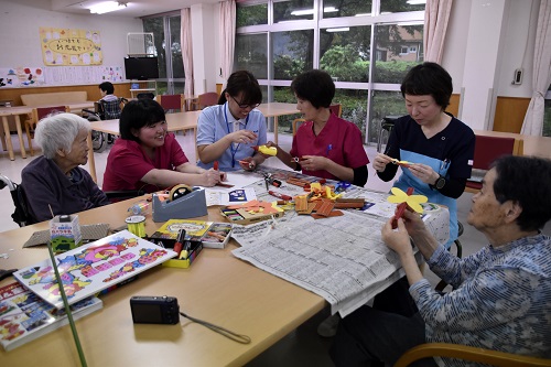 今日は、新見公立短期大学の学生さんが、介護老人保健施設おしどり荘へインターンシップに来てくれました。
